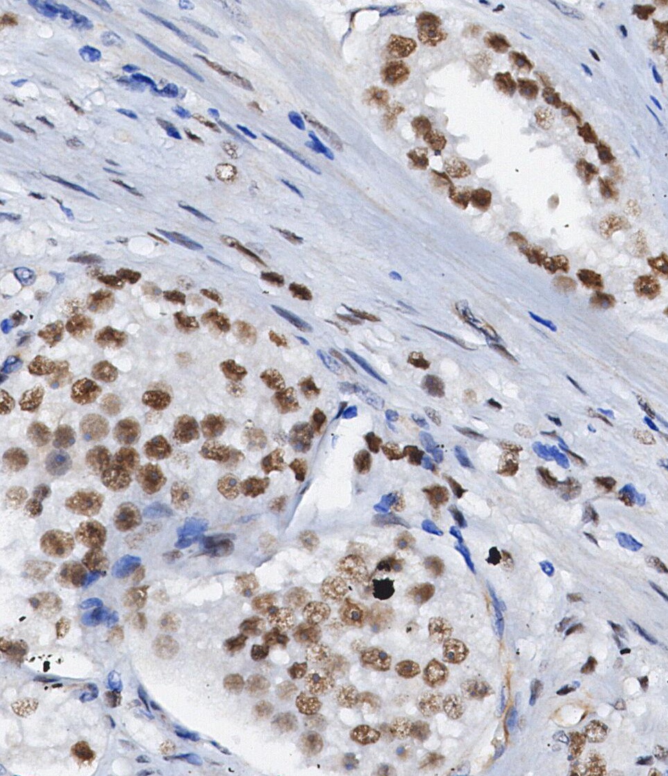 • Immunohistochemical analysis of formalin fixed paraffin embedded human prostate cancer tissue with F0985 at 1/200 dilution.