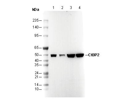 CtBP2 Antibody [B1M7] recognizes endogenous levels of total CtBP2 protein.