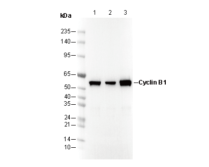 Cyclin B1 Antibody [F4L11] recognizes endogenous levels of total Cyclin B1 protein.