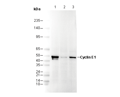 Cyclin E1 Antibody [A6P7] detects endogenous levels of Cyclin E1 proteins.