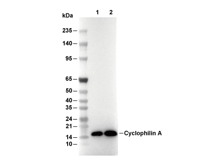 Cyclophilin A Antibody [H11E16] detects endogenous levels of total Cyclophilin A protein.