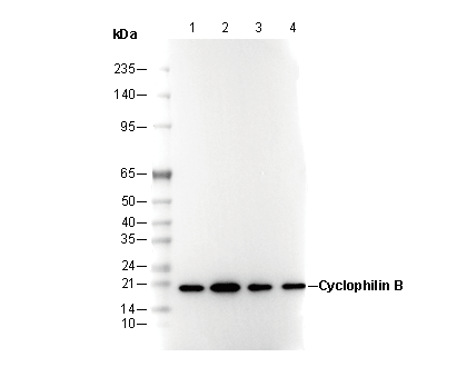 Cyclophilin B Antibody [P8L19] recognizes endogenous levels of total Cyclophilin B protein.