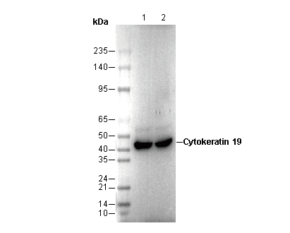 Cytokeratin 19 Antibody [B21A14] recognizes endogenous levels of total Cytokeratin 19 protein.