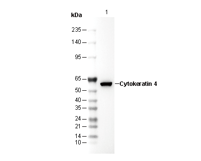 Cytokeratin 4 Antibody [G16J4] recognizes endogenous levels of total Cytokeratin 4 protein.