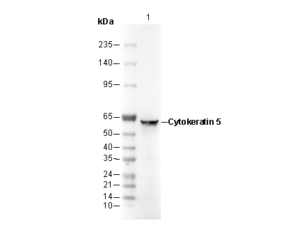 Cytokeratin 5 Antibody [G20N20] recognizes endogenous levels of total Cytokeratin 5 protein. Immunoblotting results showed that this antibody cross-reacted with cytokeratin 6, while it exhibited weak reactivity with cytokeratin 4.
