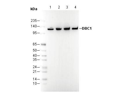DBC1 Antibody [J19E7] recognizes endogenous levels of total DBC1 protein.