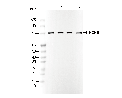 DGCR8 Antibody [H18F12] recognizes endogenous levels of total DGCR8 protein.