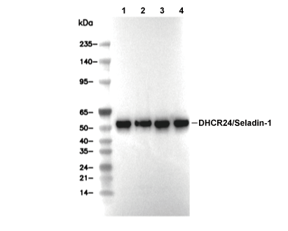 DHCR24/Seladin-1 Antibody [L8J15] detects endogenous levels of total DHCR24/Seladin-1 protein.