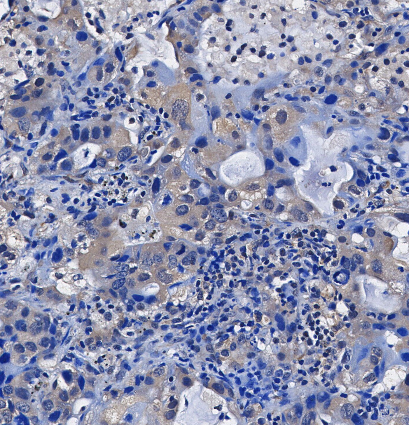 • Immunohistochemical analysis of formalin fixed paraffin embedded human Lung adenocarcinoma tissue with F0919 at 1/100 dilution.
