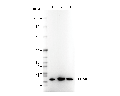eIF5A Antibody [P2B20] recognizes endogenous levels of total eIF5A protein.