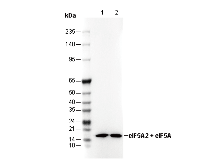 eIF5A2 + eIF5A Antibody [E10C3] recognizes endogenous levels of total eIF5A2 and eIF5A protein.