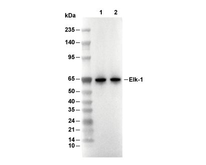 Elk-1 Antibody [J24L11] detects endogenous levels of total Elk-1 protein.