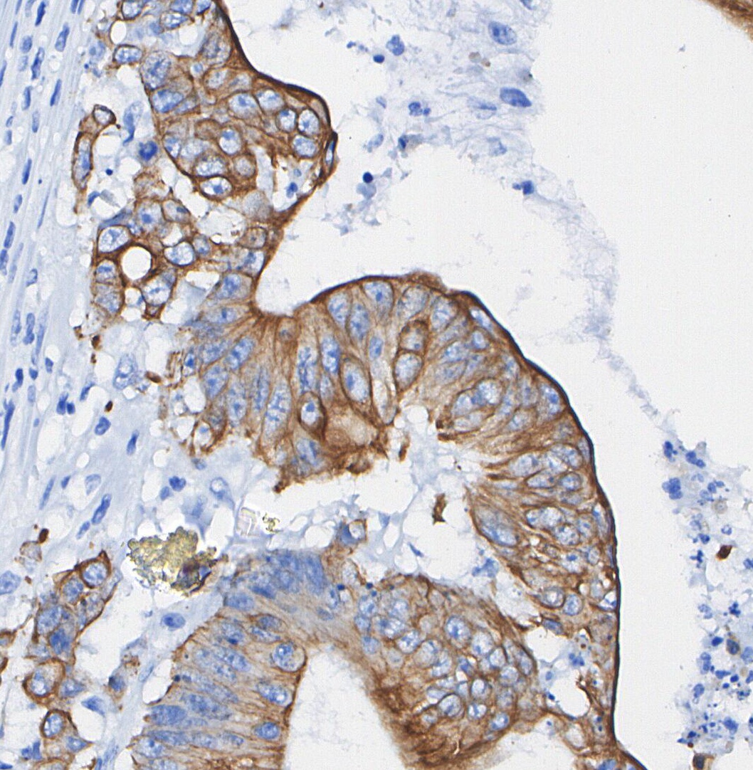 • Immunohistochemical analysis of formalin fixed paraffin embedded human Colorectal cancer tissue with F1330 at 1/50 dilution.