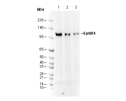 EphB4 Antibody [C23G10] recognizes endogenous levels of total EphB4 protein. "