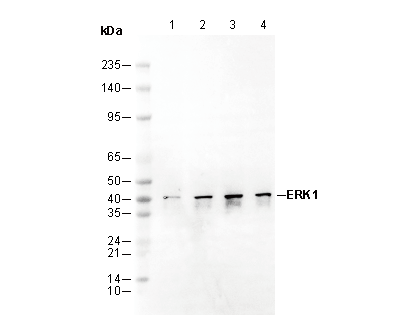 ERK1 Antibody [K24F21] recognizes endogenous levels of total ERK1 protein.