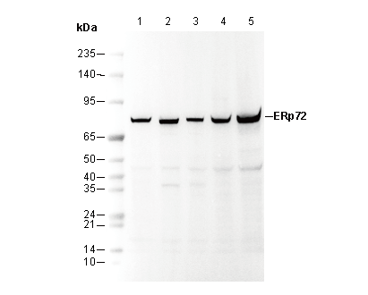 ERp72 Antibody [D9D6] detects endogenous levels of total ERp72 protein.