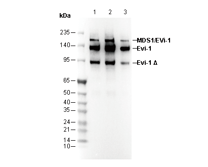 Evi-1 Antibody [J22E22] detects the endogenous levels of total Evi-1 protein.