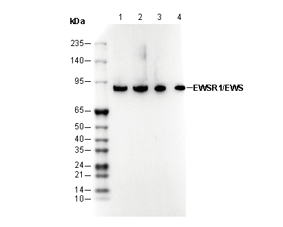 EWSR1/EWS Antibody [K7J15] recognizes endogenous levels of total EWSR1/EWS protein.