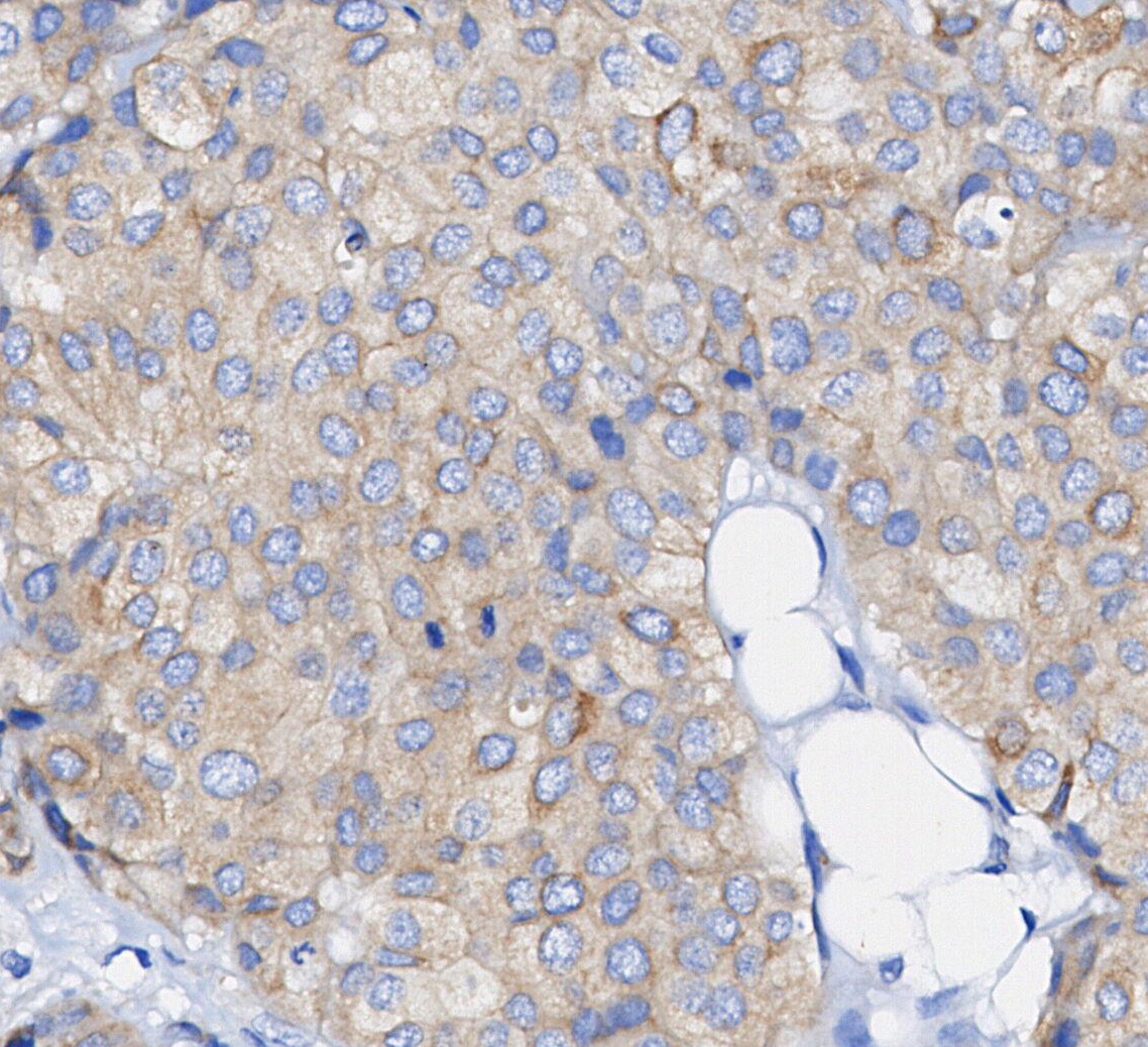 • Immunohistochemical analysis of formalin fixed paraffin embedded human breast cancer tissue with F0225 at 1/100 dilution.