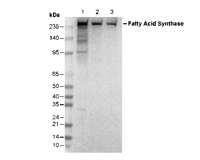 Fatty Acid Synthase Antibody [K9D22] recognizes endogenous levels of total Fatty Acid Synthase protein.