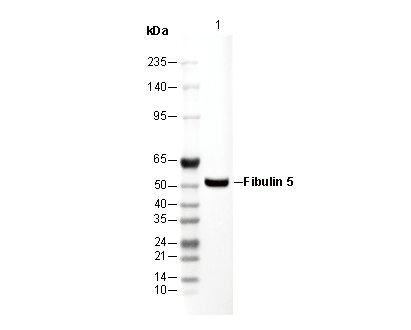 Fibulin-5 is a Class II matricellular glycoprotein that plays a crucial role in elastic fiber assembly by binding to tropoelastin, fibrillin-1, and integrins. Structurally, it contains six calcium-binding EGF-like (cbEGF) domains that facilitate protein interactions and an RGD motif that mediates cell adhesion via integrins (αvβ3, αvβ5, α9β1, α5β1, and α4β1). It is highly expressed in elastogenic tissues such as the arteries, lungs, skin, and heart valves, with expression peaking during development and decreasing postnatally. However, it is reactivated in response to vascular injury, fibrosis, and atherosclerosis, indicating a role in wound healing and vascular remodeling. Functionally, Fibulin-5 regulates elastogenesis, cell adhesion, proliferation, and TGF-β signaling in a context-dependent manner. Its role in vascular integrity and repair makes it a potential therapeutic target for vascular diseases, fibrosis, and aging-related tissue degeneration.
