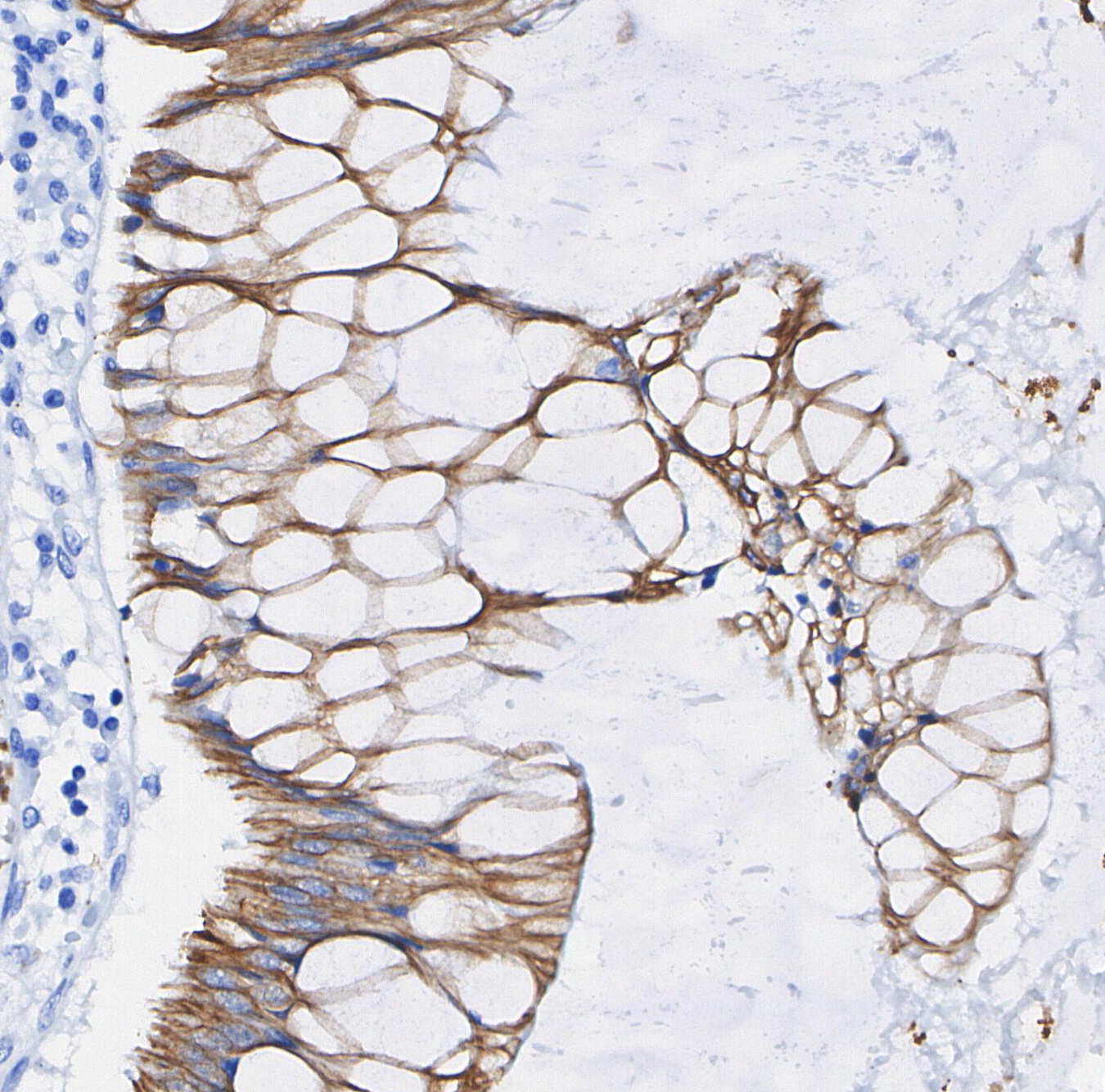 • Immunohistochemical analysis of formalin fixed paraffin embedded human Colorectal cancer tissue with F0683 at 1/100 dilution.