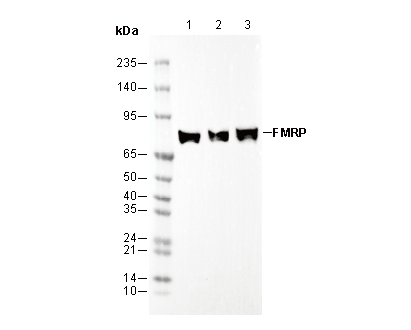 FMRP Antibody [D18E17] recognizes endogenous levels of total FMRP protein.