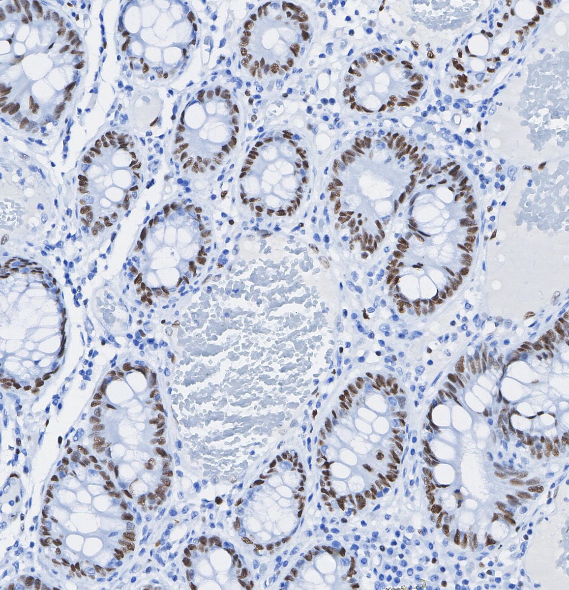 • Immunohistochemical analysis of formalin fixed paraffin embedded human Colorectal cancer tissue with F2156 at 1/100 dilution.