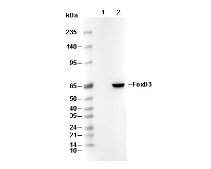 • Lane 1: HeLa, Lane 2: HeLa (transfected with FoxD3)