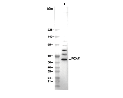 FOXJ1 Antibody [P11C9] detects endogenous levels of total FOXJ1 protein.