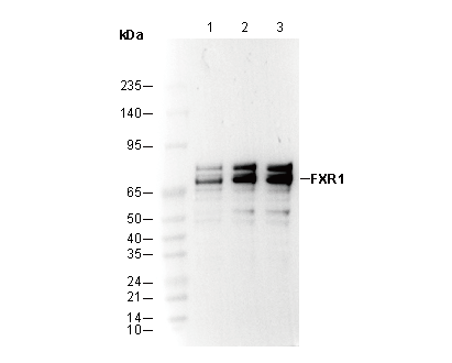 FXR1 Antibody [G10D7] recognizes endogenous levels of total FXR1 protein.