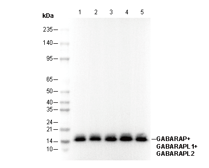 GABARAP+GABARAPL1+GABARAPL2 Antibody [E10K16] detects endogenous levels of total GABARAP+GABARAPL1+GABARAPL2 protein.