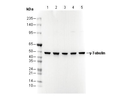 γ-Tubulin Antibody [J9F14] recognizes an epitope located within the N-terminal region of γ-tubulin.