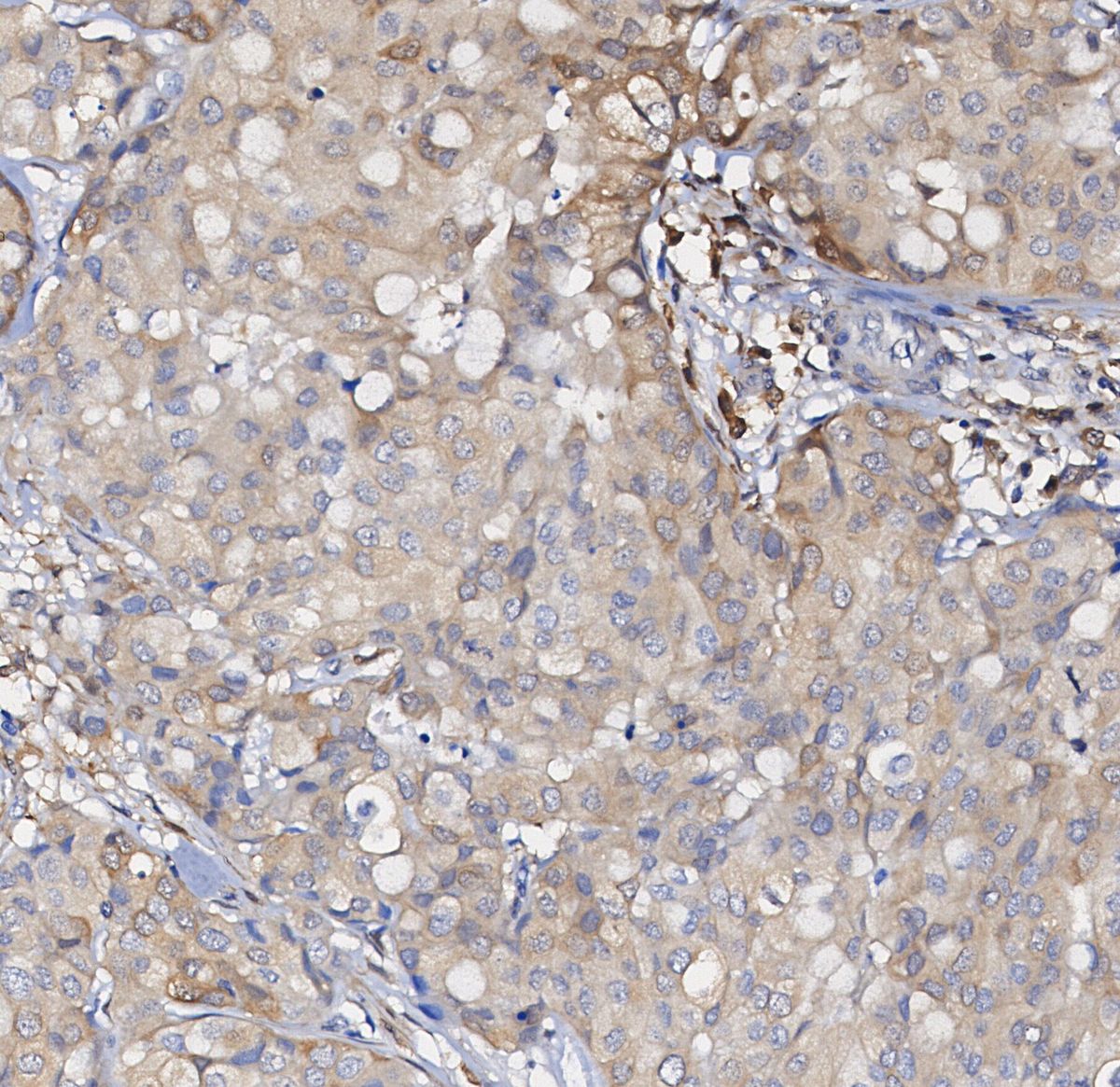 • Immunohistochemical analysis of formalin fixed paraffin embedded human breast cancer tissue with F1086 at 1/100 dilution.