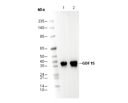 GDF15 Antibody [G3D13] detects endogenous levels of total GDF15 protein.