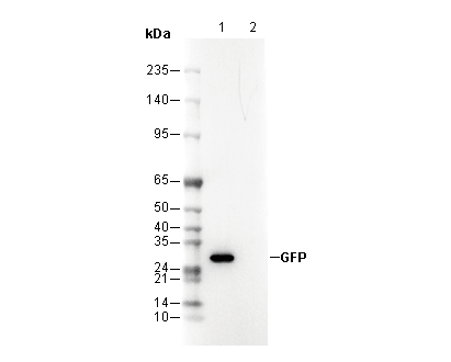 • Lane 1: 293 (GFP transfected) , Lane 2: 293 (Non-transfected)