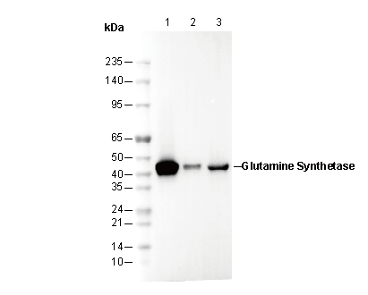 Glutamine Synthetase Antibody [L12L23] detects endogenous levels of total Glutamine Synthetase enzyme protein.