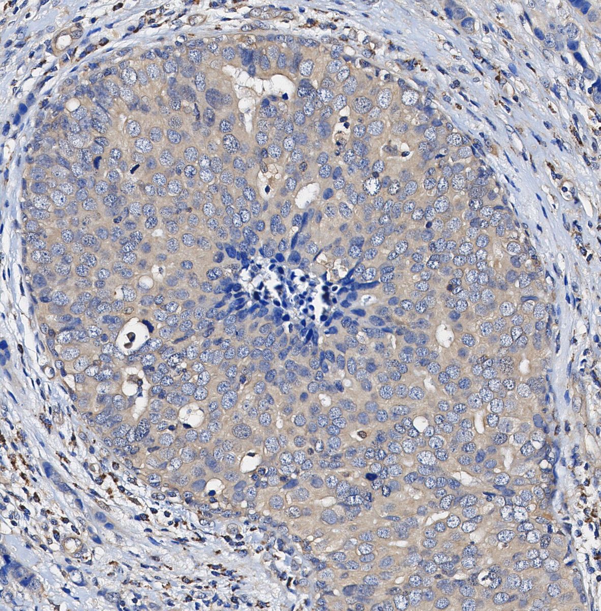 • Immunohistochemical analysis of formalin fixed paraffin embedded human Colorectal cancer tissue with F1580 at 1/50 dilution.
