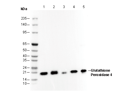 Glutathione Peroxidase 4 Antibody [J16C12] detects endogenous levels of Glutathione Peroxidase 4 proteins.