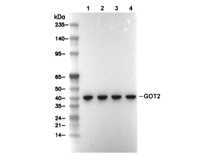 GOT2 Antibody [J21P14] detects endogenous levels of total GOT2 protein.