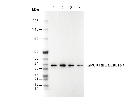 GPCR RDC1/CXCR-7 Antibody [G15F11] recognizes endogenous levels of total gpcr rdc1/cxcr-7 protein.