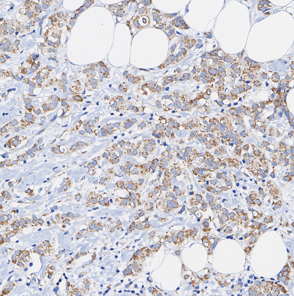 • Immunohistochemical analysis of formalin fixed paraffin embedded human Breast cancer tissue with F0782 at 1/50 dilution.