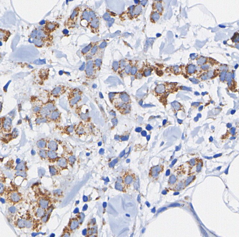 • Immunohistochemical analysis of formalin fixed paraffin embedded human Breast cancer tissue with F0221 at 1/200 dilution.