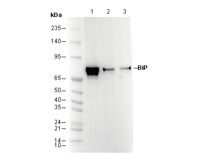 HeLa\MCF-7 などの特定の細胞株の場合、BIP タンパク質の内因性レベルを高く維持するために、外因性刺激 (ツニカマイシン、10 μg/ml、12\48 時間処理など) が必要です。
