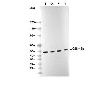 GSK-3β Antibody [H1F15] detects endogenous levels of total GSK-3β protein.