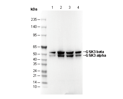 GSK3β + GSK3α Antibody [C17K20] detects endogenous levels of total GSK3β + GSK3α.