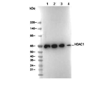 HDAC1 Antibody [C7G4] detects endogenous levels of total HDAC1 protein.
