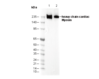 heavy chain cardiac Myosin Antibody [E17D11] recognizes endogenous levels of total heavy chain cardiac Myosin protein.