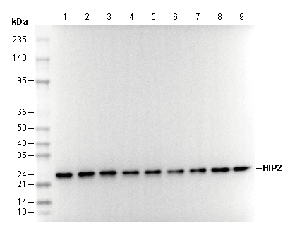 HIP2 Antibody [M11E5] recognizes endogenous levels of total HIP2 protein.