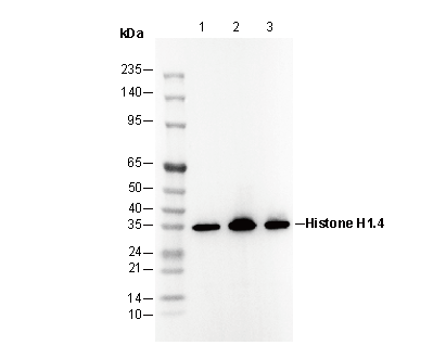 Histone H1.4 Antibody [N14K15] recognizes endogenous levels of total histone H1.4 protein.